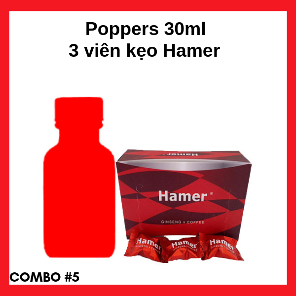 Combo #5 Popper 30ml cao cấp siêu mạnh mẽ và kẹo ngậm Hamer tăng cường sinh lực cho quý ông.