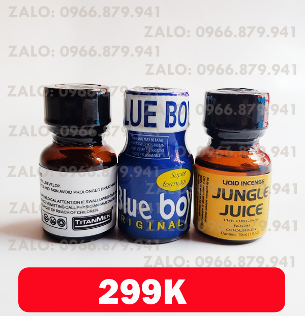 Nhằm mang đến cho bạn sự lựa chọn popper tốt nhất và mạnh mẽ nhất, đồng thời tiết kiệm nhất shop sẽ đưa cho bạn combo popper cực hot nhất hiện nay, với những loại mà bạn không thể nào bỏ qua được như popper titanmen, popper blueboy và popper jungle vàng..Đây có thể nói là combo tuyệt đỉnh của sự sung sướng. Với những bạn mới sử dụng popper thì không nên bỏ qua ba loại popper này. Tất cả đều có sự khác nhau về mùi hương và công thức, không giống nhau về nồng độ có trong hợp chất popper.